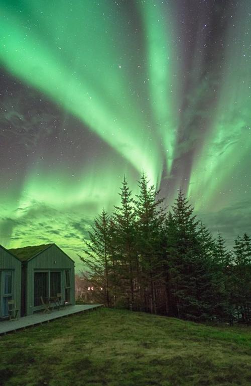 Surrounded by lava fields and dramatic southern landscapes, Magma Hotel offers a quiet, intimate Northern Lights experience. The hotel features private, spacious cabins designed for comfort and privacy, each set within the raw Icelandic nature.