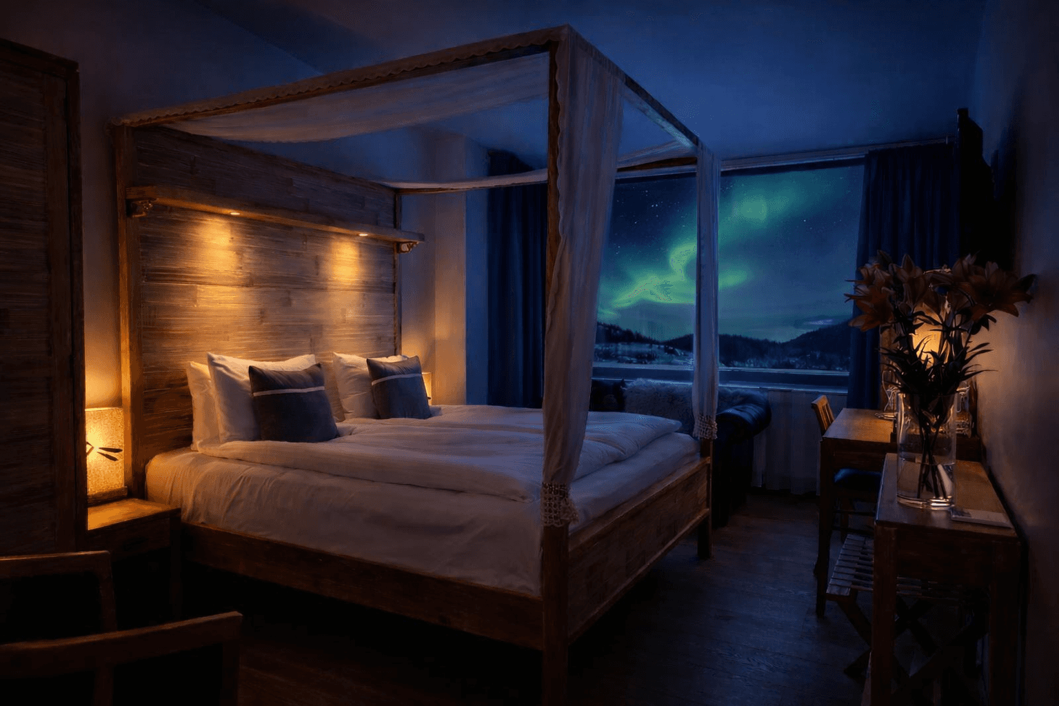 In the heart of Reykjavík, Hótel Eyja offers a rare opportunity to experience the Northern Lights from the city, on clear nights, they can be visible above the skyline and nearby mountains.
